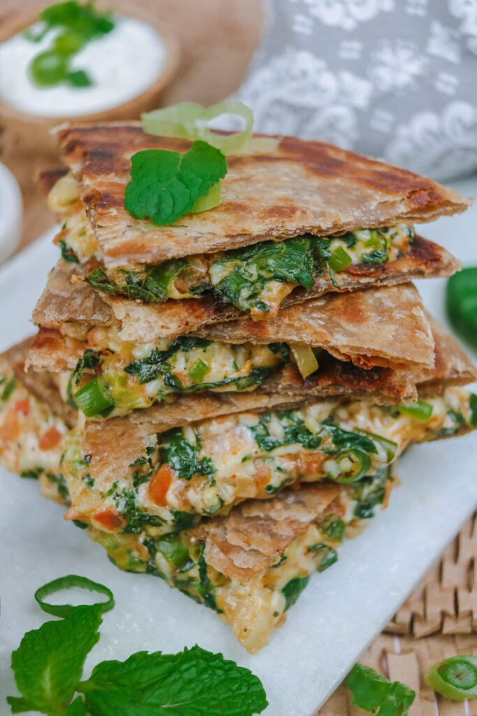 Today I’d love to present my Cheesy Paratha Quesadillas! They are so CHEESY (obviously), loaded with spinach and mint, and the crisp is absolute perfection because of the Kawan Parathas that I am using! To be totally honest, this recipe was inspired by my favorite parathas in India: Jassi De Parathe. We would always get […]